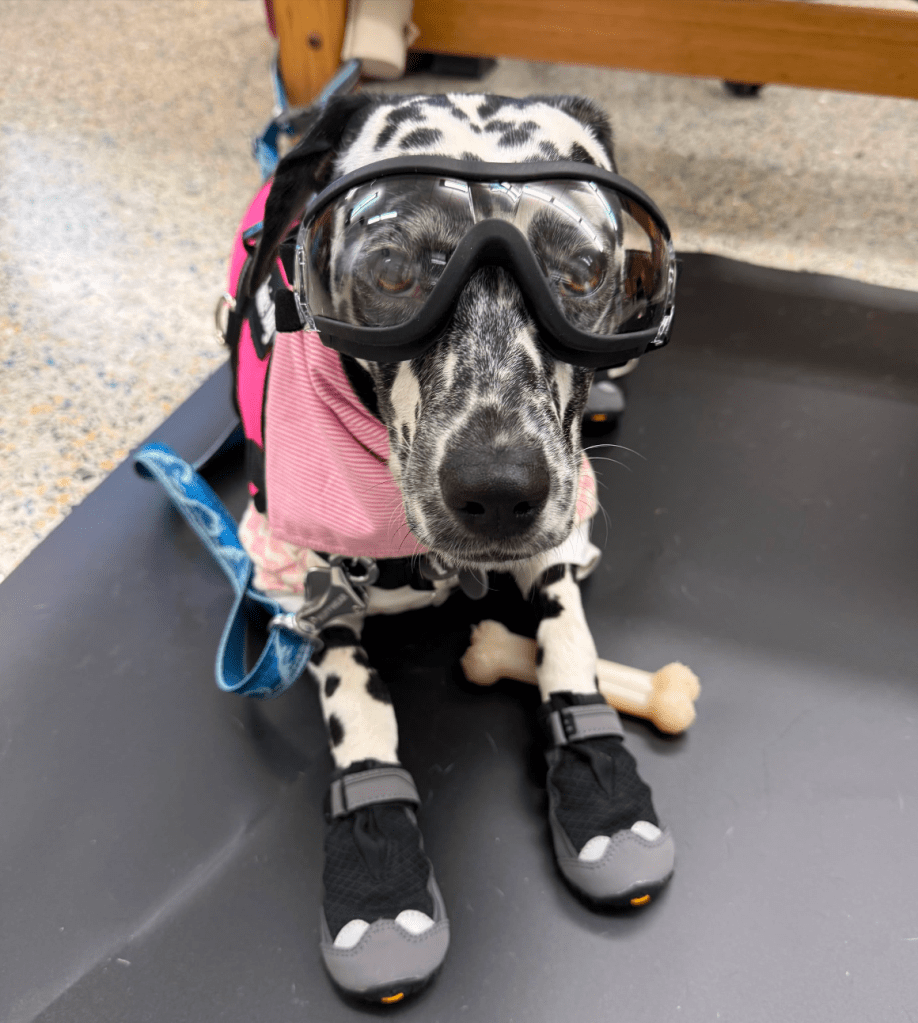Lab Mascot: Maggie (suited up in proper PPE for her O-Chem lab)